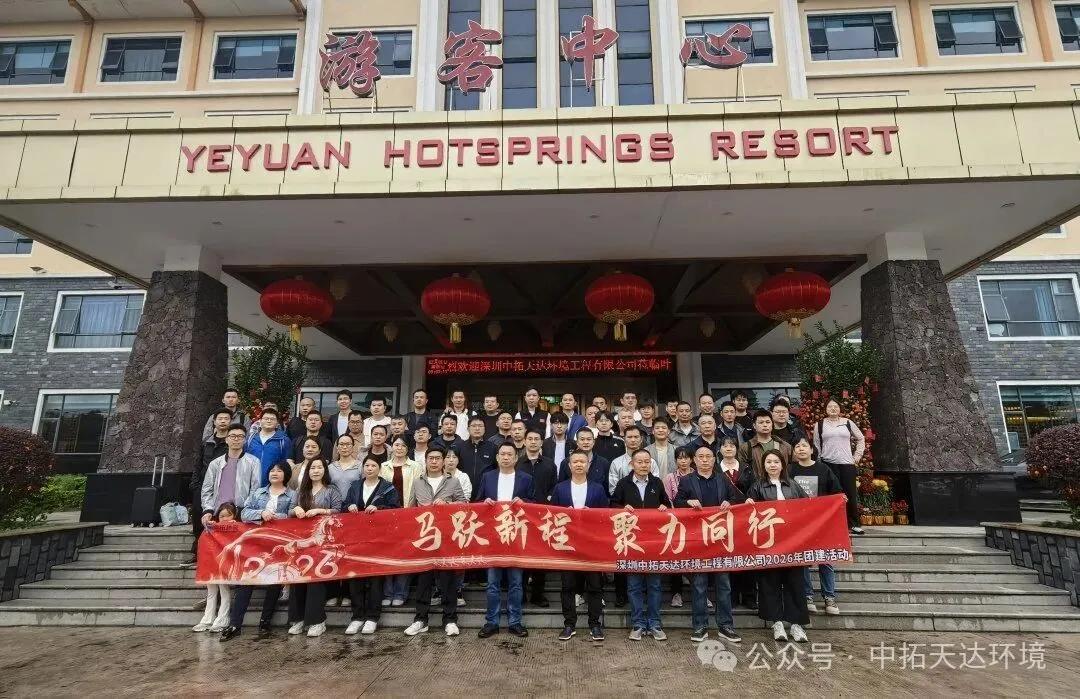 为增强团队凝聚力,丰富员工业余生活,2026 年 2 月 28 日,中拓环境组织全体员工在河源开启一场为期两天一夜的惬意舒心、凝心聚力的春日团建之旅。大家暂别忙碌的工作,在温泉中放松身心,于登高间凝聚同心,共赴美好春光。